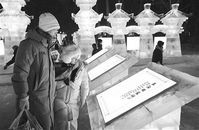 黑龍江省哈爾濱市依托冰雪文化資源創(chuàng)建廉潔品牌,打造含有清廉元素的冰雪景觀園,讓市民游客在賞冰樂雪的同時(shí)受到廉潔文化的浸潤(rùn)。圖為市民在冰雪景觀前駐足。 劉萌 攝