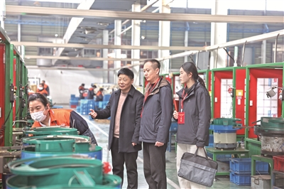 廣大紀檢監(jiān)察干部認真學(xué)習(xí)貫徹習(xí)近平總書記二十屆中央紀委五次全會重要講話精神,圍繞實現(xiàn)“十五五”時期目標任務(wù)做深做實政治監(jiān)督,忠誠履職、銳意進取,結(jié)合實際、不折不扣,確保黨中央政令暢通、決策落地生根。圖為近日,浙江省永康市紀委監(jiān)委把優(yōu)化營商環(huán)境作為推進政治監(jiān)督的有力抓手,組織干部深入企業(yè)車間了解重點項目落地、惠企政策落實等情況,助企紓困、護航賦能。施靜祎 攝