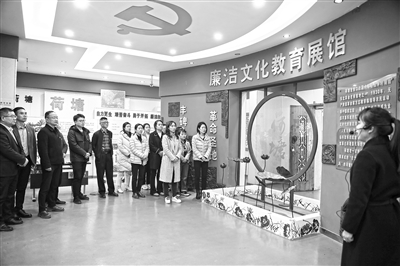 江西省景德鎮(zhèn)市紀委監(jiān)委充分挖掘本土廉潔文化資源,推動建立生動的廉潔教育實體課堂,著力鍛造忠誠干凈擔(dān)當、敢于善于斗爭的紀檢監(jiān)察鐵軍。圖為該市紀委監(jiān)委干部參觀景德鎮(zhèn)荷塘廉潔文化教育基地,接受廉政教育。歐陽晨君 攝