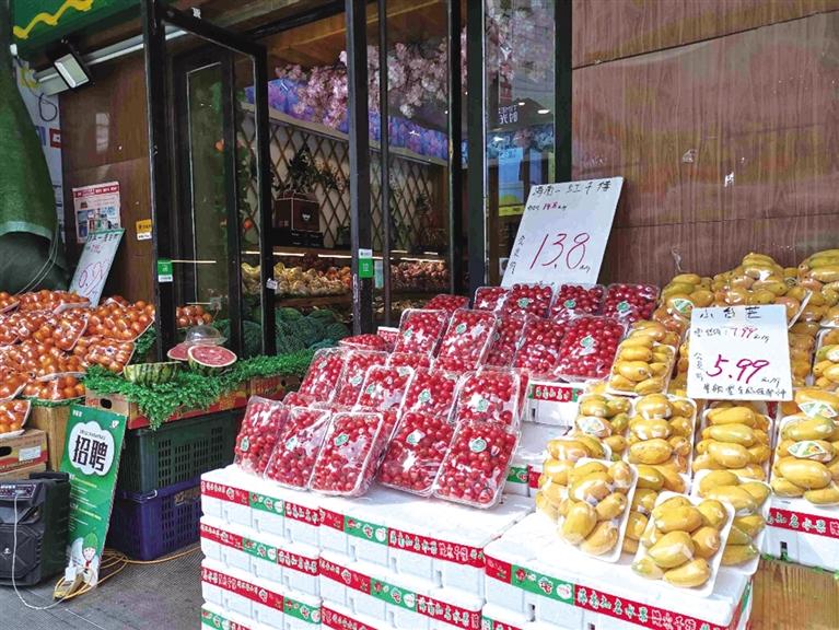 商鋪門前擺放的水果 陳 瑋 攝
