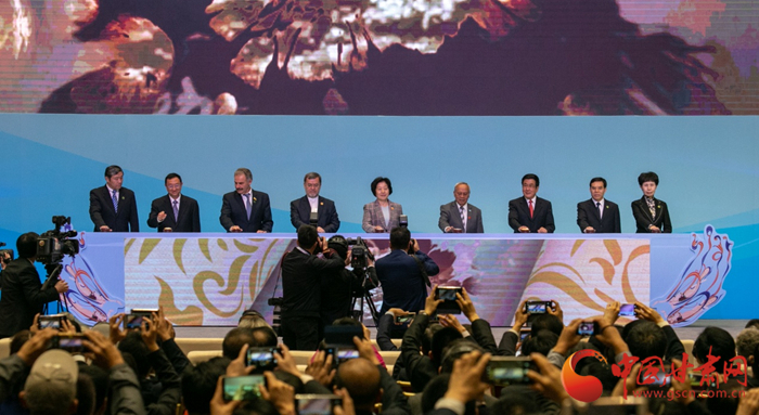 首屆絲綢之路(敦煌)國(guó)際文化博覽會(huì)于2016年9月20日在敦煌市隆重舉行。國(guó)家主席習(xí)近平發(fā)來賀信,對(duì)敦煌文博會(huì)的召開致以熱烈的祝賀,向出席敦煌文博會(huì)的各國(guó)嘉賓和朋友表示誠(chéng)摯的歡迎。時(shí)任中共中央政治局委員、國(guó)務(wù)院副總理劉延?xùn)|出席開幕式宣讀習(xí)近平賀信并發(fā)表主旨演講。來自85個(gè)國(guó)家、5個(gè)國(guó)際和地區(qū)組織的95個(gè)代表團(tuán)應(yīng)邀出席,66個(gè)外國(guó)機(jī)構(gòu)、434位國(guó)外賓客參加論壇、文化年展和文藝演出,國(guó)內(nèi)16個(gè)省區(qū)市和港澳臺(tái)地區(qū)23個(gè)代表團(tuán)共計(jì)1700多位中外嘉賓參會(huì)。6位外國(guó)政要、前政要出席開幕式并發(fā)表演講,23國(guó)文化部長(zhǎng)和代表出席了圓桌會(huì)議,討論并通過了《敦煌宣言》。