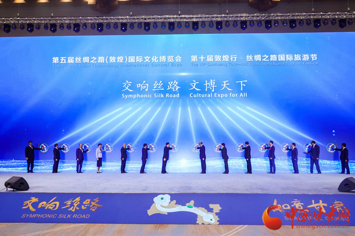 第五屆絲綢之路(敦煌)國(guó)際文化博覽會(huì)和第十屆敦煌行·絲綢之路國(guó)際旅游節(jié)于2021年9月24日—26日在甘肅省敦煌市隆重舉行。中共中央政治局委員、中央書記處書記、中宣部部長(zhǎng)黃坤明以視頻形式出席開幕式暨高峰會(huì)議并發(fā)表主旨演講,300多名國(guó)外、國(guó)際組織及國(guó)內(nèi)省區(qū)市代表現(xiàn)場(chǎng)參加會(huì)議,400多萬網(wǎng)友線上參加有關(guān)活動(dòng)。大會(huì)以習(xí)近平新時(shí)代中國(guó)特色社會(huì)主義思想為指導(dǎo),認(rèn)真落實(shí)“一帶一路”倡議,以線上線下相結(jié)合的方式舉辦一系列主體活動(dòng),有力促進(jìn)絲路沿線各國(guó)文化交流與旅游合作,有效增進(jìn)文化認(rèn)同與情感共鳴,是一次展示中國(guó)文化自信、共商“一帶一路”建設(shè)、推動(dòng)文旅融合發(fā)展的盛會(huì),是一次提升甘肅對(duì)外影響力、展示開放新形象、凝聚發(fā)展新動(dòng)力的盛會(huì),得到了國(guó)際社會(huì)的廣泛贊譽(yù)和一致好評(píng)。