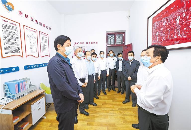 8月26日至28日,中共中央政治局常委、全國人大常委會委員長栗戰(zhàn)書在甘肅就黃河保護法立法進行調(diào)研。這是8月26日,栗戰(zhàn)書在慶陽市西峰區(qū)后官寨鎮(zhèn)人大代表之家調(diào)研。新華社記者 龐興雷