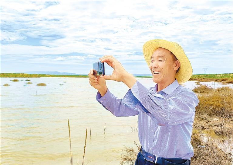 郭萬剛格外珍惜這一灘湖水,他沿著水岸走了很久,還不時地用手機拍照,他認為這是大自然對古浪持續(xù)開展生態(tài)建設的回報。“我今年70歲了,這是我第一次在這片沙漠里見到湖泊,給它取名‘紅沙湖’,希望它像沙漠里的紅柳一樣永遠充滿生機,不要干涸。”郭萬剛說。