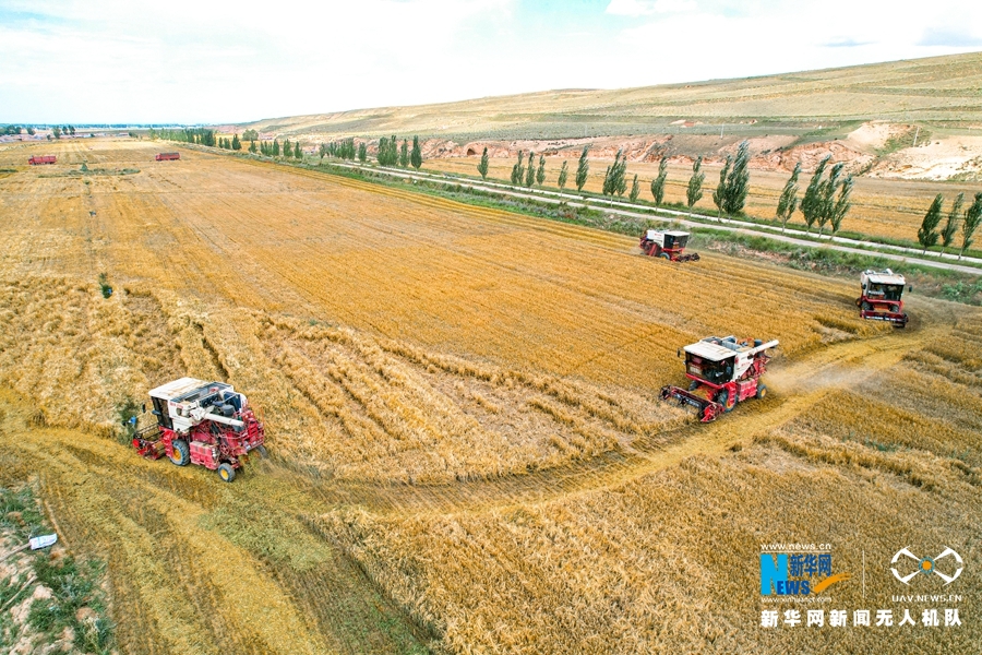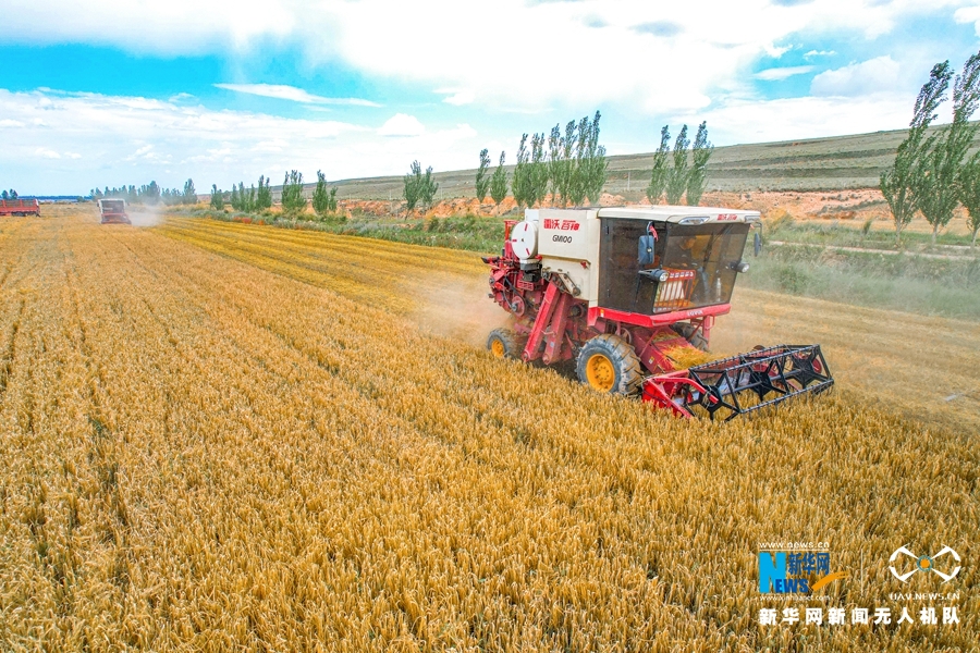 秋天是收獲的季節(jié),甘肅省張掖市民樂(lè)縣洪水鎮(zhèn)費(fèi)寨村的麥田里,金燦燦的麥穗隨風(fēng)搖曳,一輛輛收割機(jī)來(lái)回穿梭,收割、脫粒、裝車(chē),一氣呵成。(拍攝、制作:王曉涇 陳思宏 曹芬華)