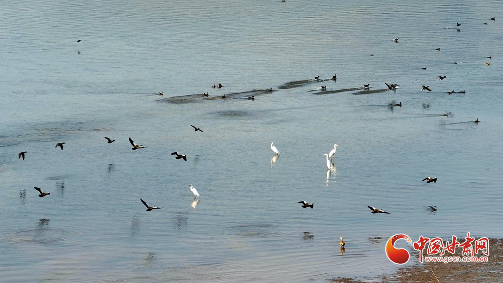 深秋時節(jié),永靖縣太極湖濕地蘆葦搖曳,野鴨戲水,白鷺蹁躚,宛如一幅美妙的秋日畫卷。