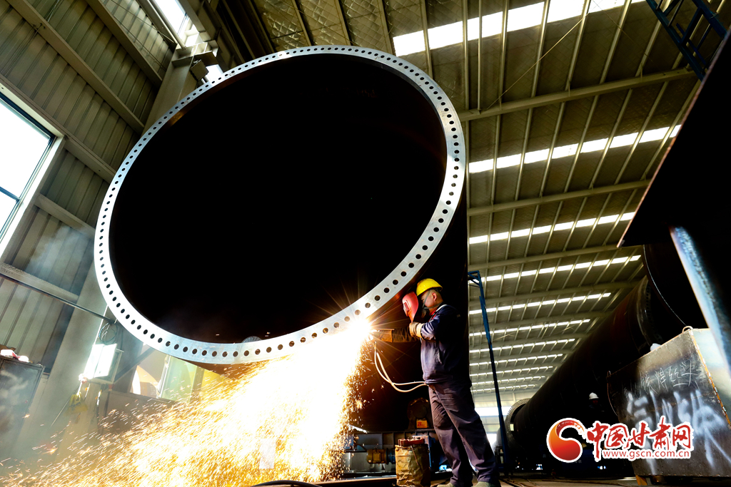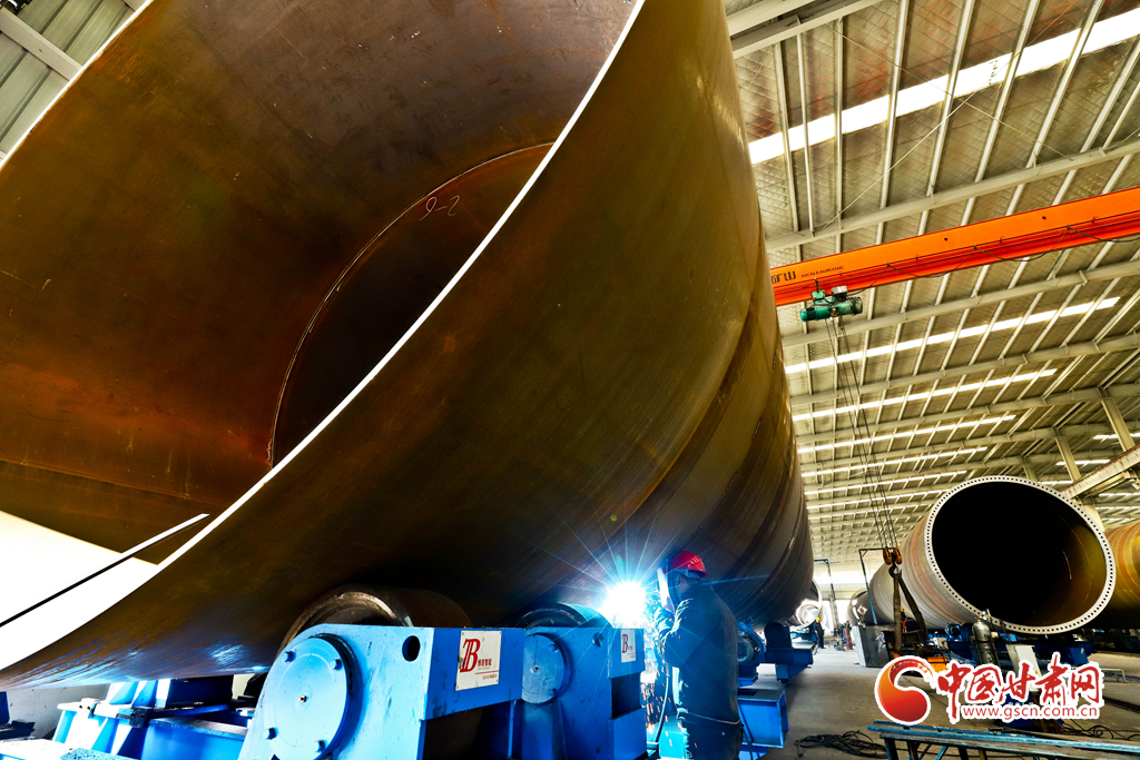 近日,在高臺縣一風電裝備生產(chǎn)基地內(nèi),工人們正在加快訂單生產(chǎn),進行設備調(diào)試,保障風力發(fā)電機組的生產(chǎn)運行。