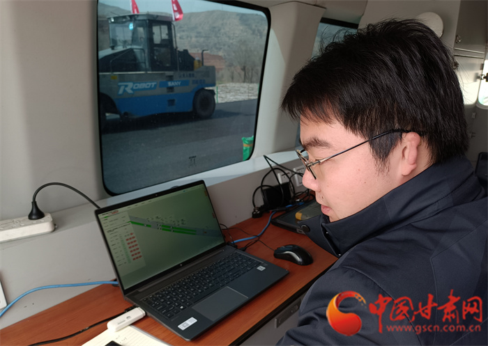 中國甘肅網(wǎng)4月6日訊(本網(wǎng)記者 宋芳科 實習(xí)生 王文博)“駕駛員可以休息一下,下面由無人駕駛集群智能化攤鋪路面。”4月6日上午,甘肅路橋安臨路面二標(biāo)項目瀝青路面鋪設(shè)現(xiàn)場,無人駕駛的鋪路機(jī)組成集群駛?cè)胧┕がF(xiàn)場,在無駕駛員操作的情況下智能前行,實現(xiàn)公路鋪設(shè)碾壓一體化成型,而指揮這些龐大工程車輛的僅僅是一名技術(shù)人員和一臺筆記本電腦,真正實現(xiàn)了路面鋪設(shè)智控化。