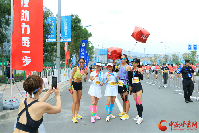 經(jīng)過兩個多小時的激烈角逐,全程馬拉松男子和女子組名次相應產(chǎn)生。其中,男子馬拉松第一名打破了蘭馬賽會紀錄,女子馬拉松第一、二、三名均打破了蘭馬賽會記錄。