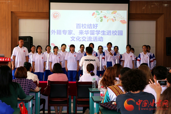 中國甘肅網(wǎng)6月26日訊 (西北角·中國甘肅網(wǎng)記者 張?zhí)m琴)6月25日下午,“百校結(jié)好”倡議之“外籍專家、來華留學生進校園”文化交流活動在蘭州交通大學附屬中學舉行。來自蘭州交通大學國際交流學院的外籍教師、來華留學生與該校師生熱情的互動交流,為今年“百校結(jié)好”倡議系列活動締結(jié)友誼之花再結(jié)“碩果”。