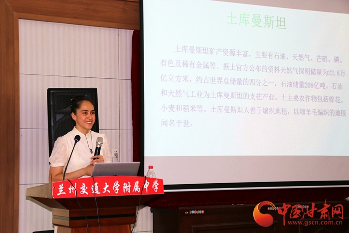 活動中,蘭州交通大學附屬中學組織七、八年級用英語表演了詩歌朗誦、話劇、合唱、獨唱等節(jié)目,來華留學生代表獻上了土庫曼斯坦傳統(tǒng)舞蹈表演,現(xiàn)場氣氛熱烈。