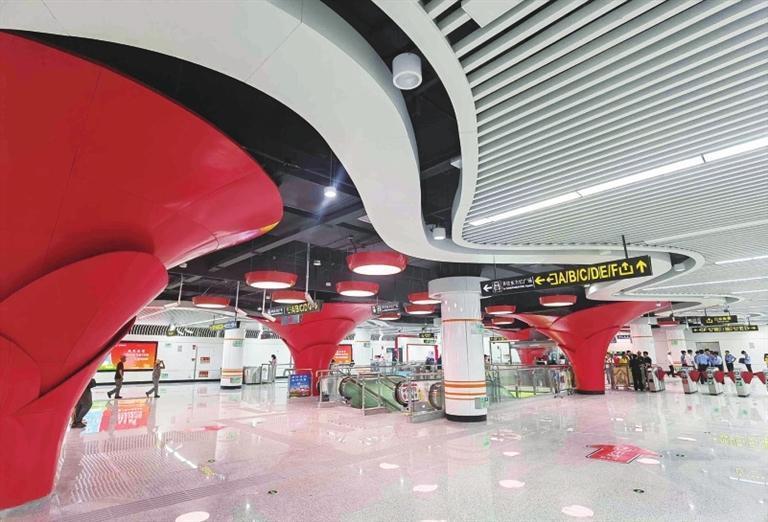 “媽媽,這個(gè)紅色的柱子像盛開的花,燈像咱們的太平鼓呀。”蘭州軌道交通2號(hào)線剛開通,市民梁鑫就帶著孩子來(lái)乘坐。走進(jìn)雁白大橋站,獨(dú)特的裝飾風(fēng)格讓母子倆討論起來(lái)。其實(shí),這些都是2號(hào)線的“小心機(jī)”,你發(fā)現(xiàn)了嗎?