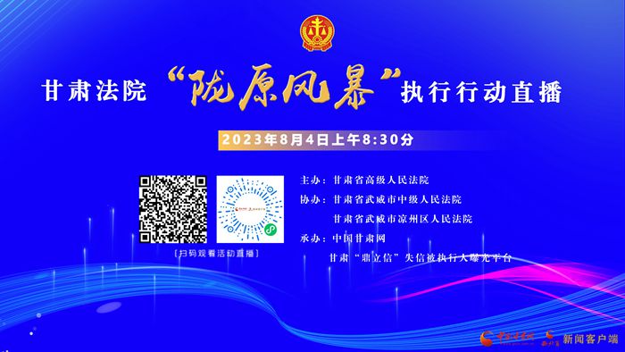 甘肅省高級(jí)人民法院執(zhí)行局副局長(zhǎng)季學(xué)勇介紹,“隴原風(fēng)暴執(zhí)行行動(dòng)”將持續(xù)至今年年底,期間,每月將開展至少2次鼎立信“隴原風(fēng)暴行動(dòng)”直播活動(dòng),在推動(dòng)執(zhí)行工作的同時(shí),為廣大網(wǎng)友答疑解惑,向社會(huì)傳遞人民法院解決執(zhí)行難的毅力和決心。