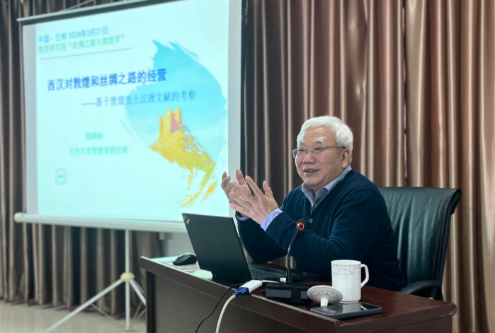 2024年3月21日下午,蘭州大學鄭炳林教授應邀在“絲綢之路與敦煌學”系列公益學術講座主講《兩漢對敦煌和絲綢之路的經(jīng)營》。講座由敦煌研究院敦煌文獻研究所主辦,趙曉星研究員主持,在蘭州分院舉行。我院專家學者,蘭州大學、西北師范大學、西北民族大學師生,及敦煌學愛好者50余人現(xiàn)場參加了此次學術活動。