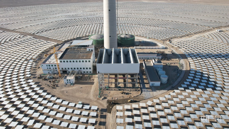 近日,走進(jìn)金塔中光太陽能“10萬千瓦光熱+60萬千瓦光伏”項(xiàng)目建設(shè)現(xiàn)場(chǎng),只見綿延數(shù)十公里的太陽能電池板整齊排列,25594面單塊面積30平方米的高精度定日鏡環(huán)繞著247米高的吸熱塔,如同一朵巨大的銀色“向日葵”。