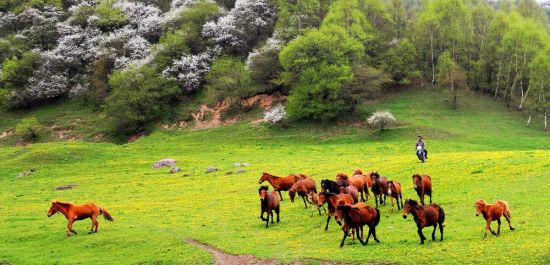 關(guān)山在很長(zhǎng)一段時(shí)間一直是中國(guó)重要的牧馬之地。據(jù)史書(shū)記載,大將衛(wèi)青、霍去病北征匈奴,曾從關(guān)山征集戰(zhàn)馬14萬(wàn)匹,足見(jiàn)當(dāng)時(shí)這里牧馬業(yè)的繁盛。然而現(xiàn)在,馬的蹤跡只是景區(qū)的點(diǎn)綴,要想看到萬(wàn)馬奔騰的場(chǎng)面,要去河西走廊的山丹軍馬場(chǎng)。