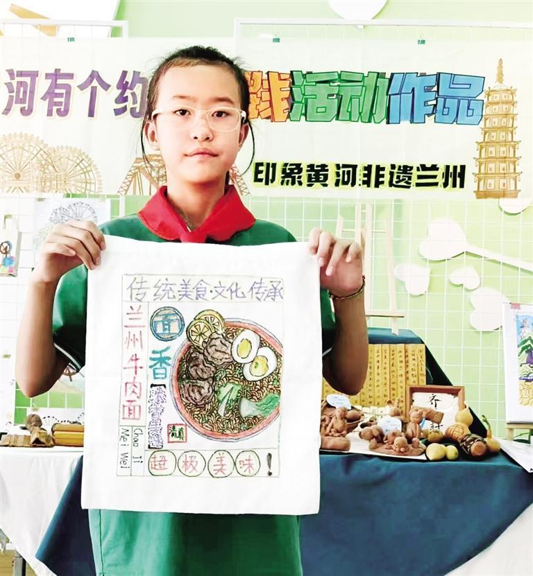 開學伊始,蘭州市城關區(qū)牟家莊小學在學校一樓大廳的小舞臺上精心布置以“‘暑’我不一樣,實踐助成長·我和黃河有個約會”為主題的“暑期實踐活動成果”作品展,同學們用廢舊材料自制的水車、精美的蘭州剪紙、蘭州牛肉面文創(chuàng)產(chǎn)品等代表著蘭州文化特色的作品琳瑯滿目、種類豐富,來往的師生都情不自禁地駐足欣賞,感受家鄉(xiāng)文化的魅力。