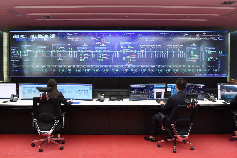 這是2021年9月6日在甘肅省引洮工程水資源利用中心調(diào)度中心拍攝的引洮供水一期工程調(diào)度現(xiàn)場。新華社記者范培珅攝