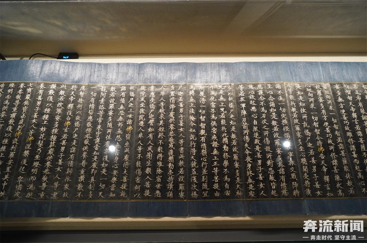 金銀書《大般若波羅蜜多經(jīng)》的由來要追溯到明正統(tǒng)六年(公元1441年),當時的欽差鎮(zhèn)守陜西甘肅等處御馬監(jiān)太監(jiān)兼尚寶監(jiān)太監(jiān)魯安公王貴,會集眾多高僧大德與書畫名士,以寺藏御賜《北藏》為藍本,用金銀粉書寫、綾錦裝幀了一部《大般若波羅蜜多經(jīng)》共600卷。經(jīng)文書法結(jié)體周正,字體清雅俊美,使金銀經(jīng)《大般若波羅蜜多經(jīng)》充滿經(jīng)久不褪、華美莊嚴的金粉之氣。