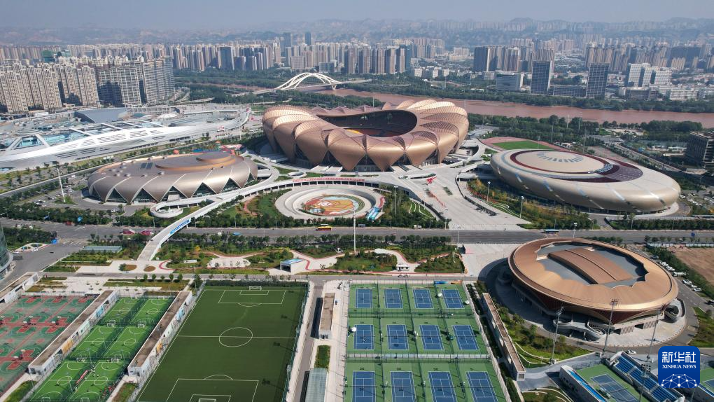 這是位于黃河蘭州段岸邊的蘭州奧體中心(9月26日攝,無人機照片)。新華社記者陳斌攝