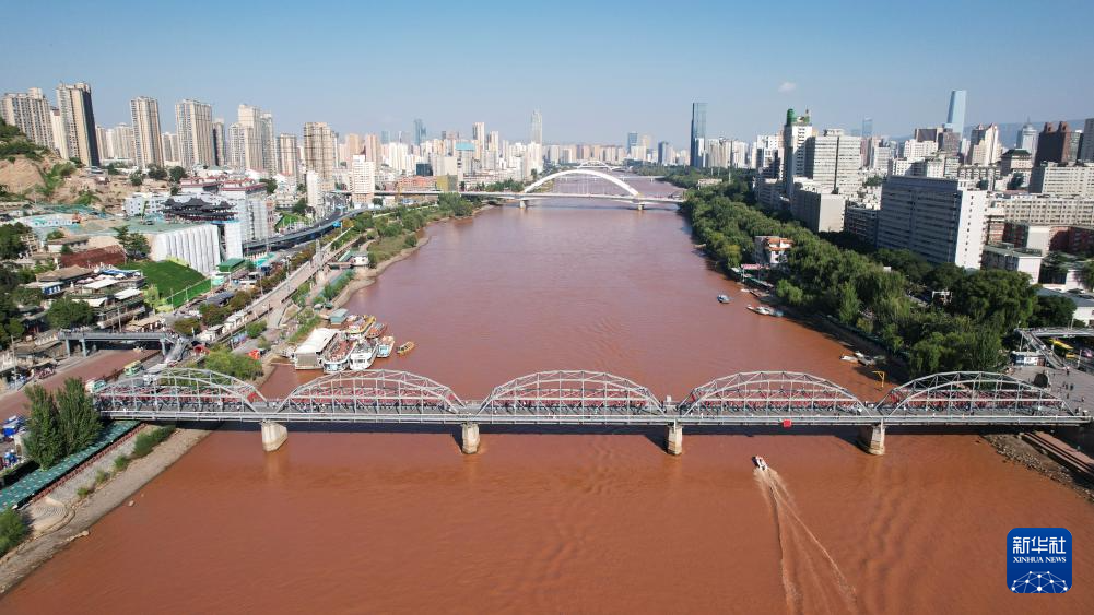 這是黃河蘭州段首座鋼構(gòu)橋梁——金雁黃河大橋(9月23日攝,無人機照片)。新華社記者陳斌攝