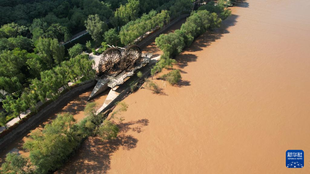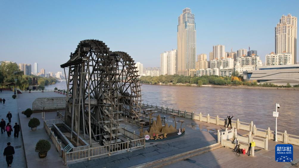 這是位于蘭州市城關(guān)區(qū)的蘭州水車博覽園內(nèi)的水車(9月24日攝,無人機照片)。新華社記者陳斌攝