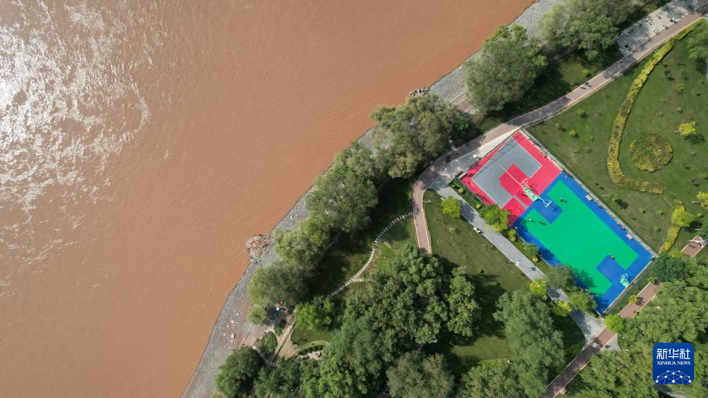 這是位于蘭州市城關(guān)區(qū)黃河北岸的蘭州馬拉松公園一處籃球場(9月24日攝,無人機照片)。新華社記者陳斌攝