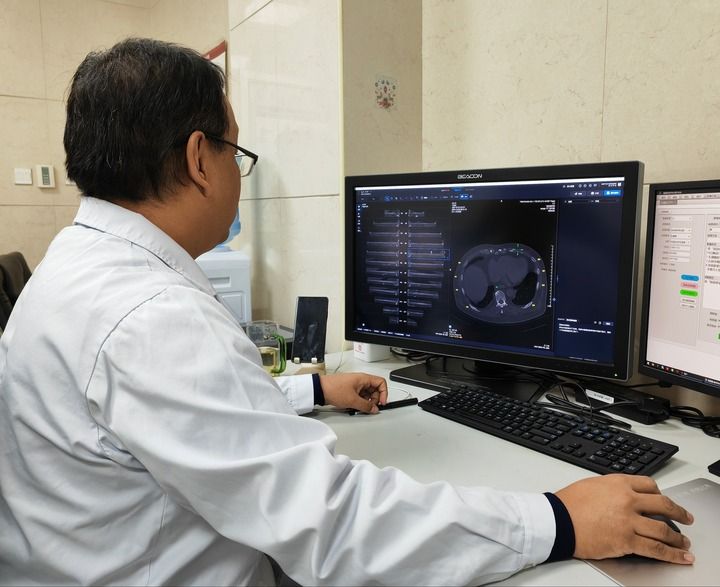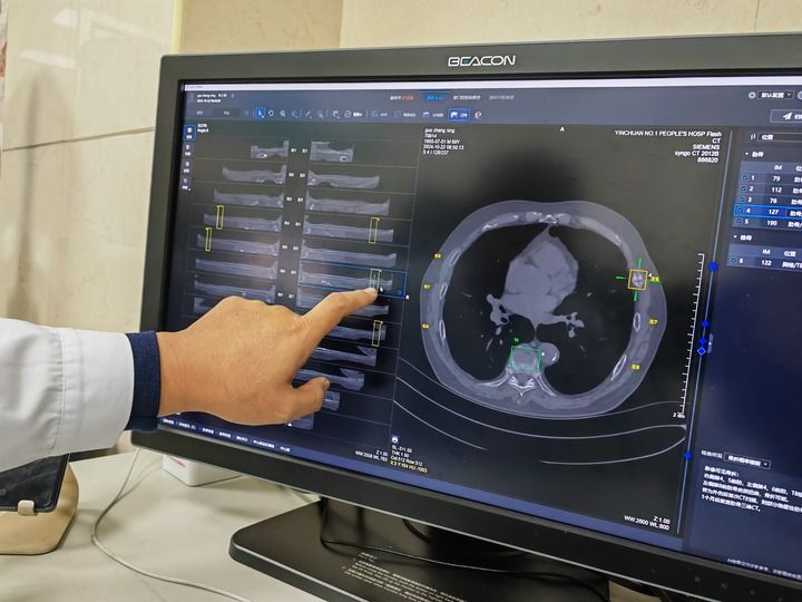 在寧夏回族自治區(qū)銀川市第一人民醫(yī)院,放射科副主任醫(yī)師姜榮興打開電腦上的人工智能輔助診斷系統(tǒng),導(dǎo)入病患CT影像資料后,輕點(diǎn)鼠標(biāo),系統(tǒng)瞬間完成初篩——24根肋骨逐一呈現(xiàn)在屏幕上,骨折和疑似骨折的部位一目了然。醫(yī)生再對初篩結(jié)果作出診斷處理,全程用時(shí)不到4分鐘。