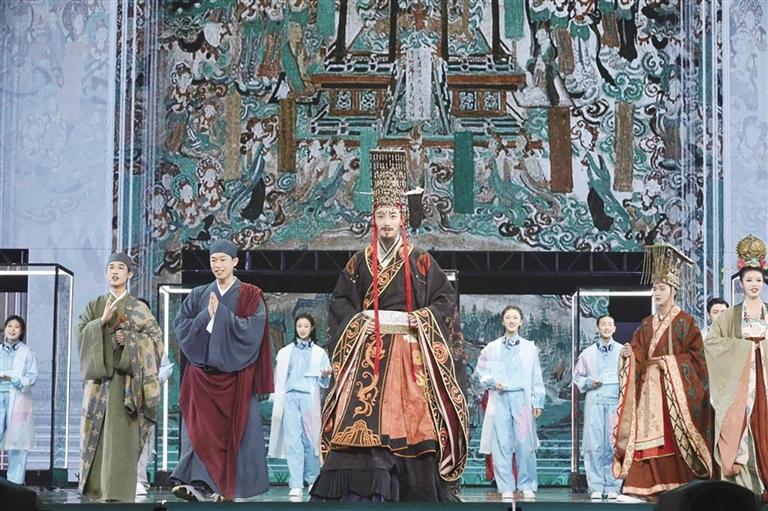 中國(guó)甘肅網(wǎng)12月11日訊 據(jù)蘭州晚報(bào)報(bào)道(記者 張鵬偉)12月7日,由中國(guó)國(guó)家話劇院院長(zhǎng)田沁鑫擔(dān)任編劇、導(dǎo)演,中國(guó)國(guó)家話劇院青年演員張藝興主演的音樂(lè)話劇《受到召喚·敦煌》正式首演,國(guó)家速滑館“冰絲帶”座無(wú)虛席,觀眾借由敦煌不斷流轉(zhuǎn)的千年時(shí)空,沉浸感受華夏歷史的恢宏與廣闊,真情為中華文化的璀璨與瑰麗而自豪。