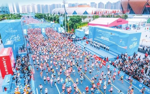 2024年5月26日7時(shí)30分,“蘭州銀行杯”2024蘭州馬拉松在蘭州奧體中心鳴槍開賽,來自美國、德國、澳大利亞、肯尼亞、韓國等22個(gè)國家和地區(qū)以及全國各地的4萬名選手相聚金城,用奔跑釋放生命活力。2024年是蘭州馬拉松新十年的開端之年,首次采用“全半程混合分區(qū)”的出發(fā)機(jī)制,并對賽道進(jìn)行優(yōu)化升級(jí),將絲路文化、黃河文化融入?yún)①惙酮?jiǎng)牌的設(shè)計(jì)中,還開展甘肅省博物館、甘肅簡牘博物館、蘭州市博物館、讀者雜志社的文創(chuàng)展銷活動(dòng),邀請參賽選手免費(fèi)參觀9個(gè)景區(qū),為廣大選手提供更加優(yōu)質(zhì)、精彩的賽事體驗(yàn)。