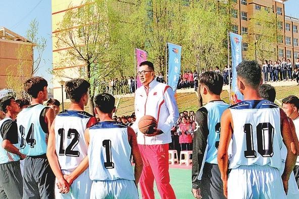 男籃前國手張兆旭在積石山與學(xué)生互動(dòng)交流。