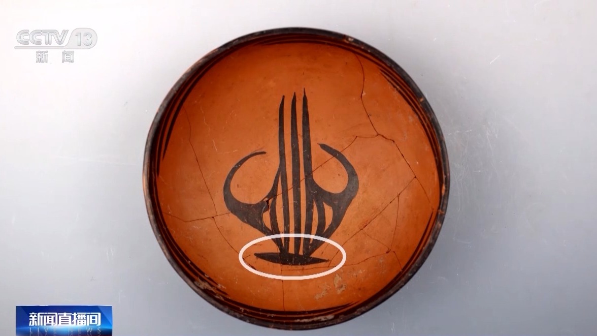 中國社會科學(xué)院考古研究所副研究員 郭志委:有的專家看到,第一反應(yīng)覺得這是只鳥。有的專家覺得像植物,有不同的解釋,但是這個紋飾確實第一次見。