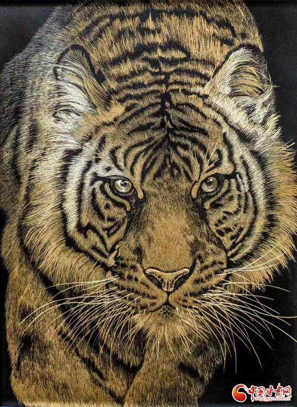 對張兆武來說,做鍥金畫從來不是“照貓畫虎”。他琢磨傳統(tǒng)書畫的筆墨、篆刻的力道,慢慢攢出了自己的一套刀法;創(chuàng)作時,心里裝的也全是敦煌——從莫高窟第112窟里“反彈琵琶”的靈動舞姿,到傳說中“九色神鹿”的溫潤模樣,都成了他刻刀下的主角。他刻出的飛天,飄帶像帶著風(fēng);刻出的菩薩,眉眼間透著莊重;金屬的光澤在畫面上流轉(zhuǎn),明明是靜態(tài)的畫,卻像在講一段活的敦煌故事。“不用多說什么,看過的人能懂這份美。”張兆武說的這份“懂”,恰恰打破了文化和語言的距離,讓東方的古老美學(xué),和全世界的現(xiàn)代審美碰出了共鳴。