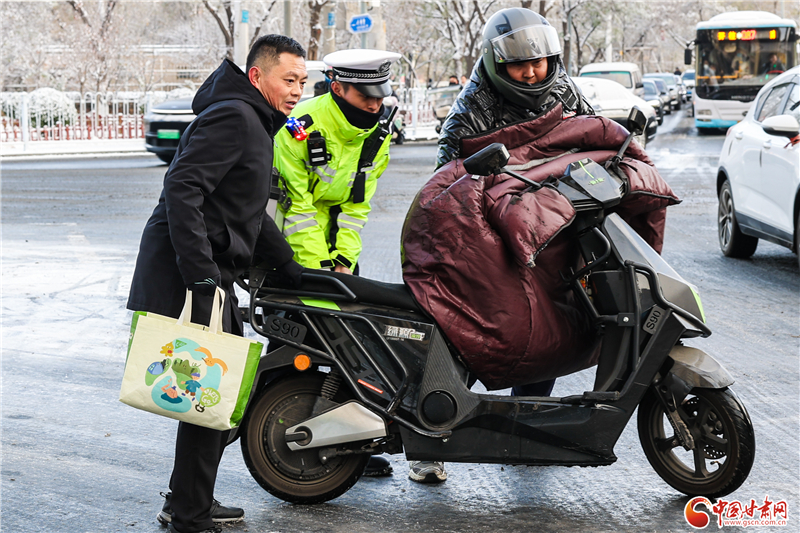11月24日,蘭州市迎來(lái)降雪天氣,城區(qū)道路積雪濕滑,給早高峰交通通行帶來(lái)嚴(yán)峻考驗(yàn)。蘭州市公安局聞雪而動(dòng),第一時(shí)間啟動(dòng)惡劣天氣應(yīng)急預(yù)案,全警動(dòng)員投入疏堵保暢工作,用堅(jiān)守為市民出行筑牢安全防線。
