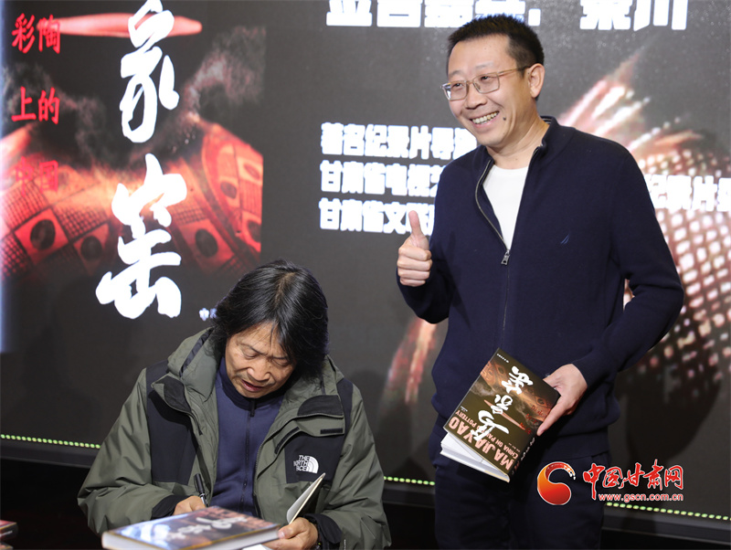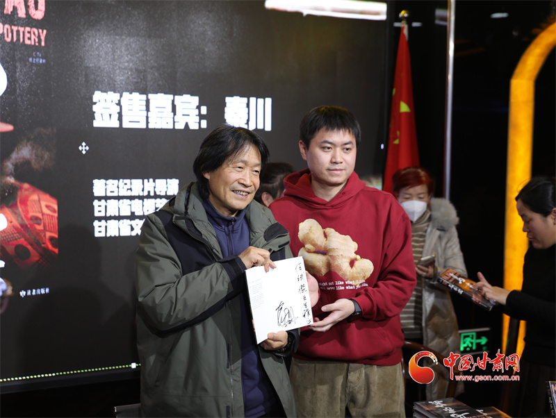 中國甘肅網(wǎng)11月24日訊 11月23日,《馬家窯·彩陶上的中國》公益展映暨同名圖書首場線下簽售在蘭州舉行。導演秦川親臨現(xiàn)場,與紀錄片愛好者近距離互動交流,分享紀錄片背后的創(chuàng)作故事,并為讀者簽售、分享新書。