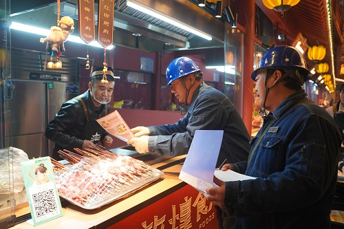 “老板,您的攤位線路沒問題,別讓電器超負(fù)荷運行,出現(xiàn)任何用電問題請及時聯(lián)系我們。”2月3日晚,在敦煌燒烤爭霸賽現(xiàn)場,國網(wǎng)敦煌市供電公司工作人員正在對賽場線路設(shè)備進(jìn)行巡視檢查,以確保競賽的順利進(jìn)行。