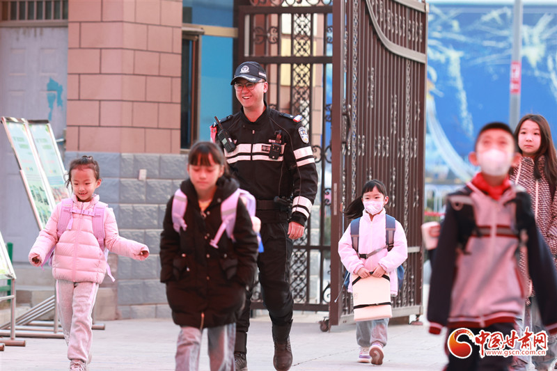 2月25日,蘭州市中小學(xué)開學(xué),學(xué)生們走進(jìn)校園,開始新學(xué)期學(xué)習(xí)生活,蘭州市公安局交管支隊(duì)城關(guān)大隊(duì)輔警在城關(guān)區(qū)水車園小學(xué)民勤街分校,為學(xué)生們講解交通安全知識。