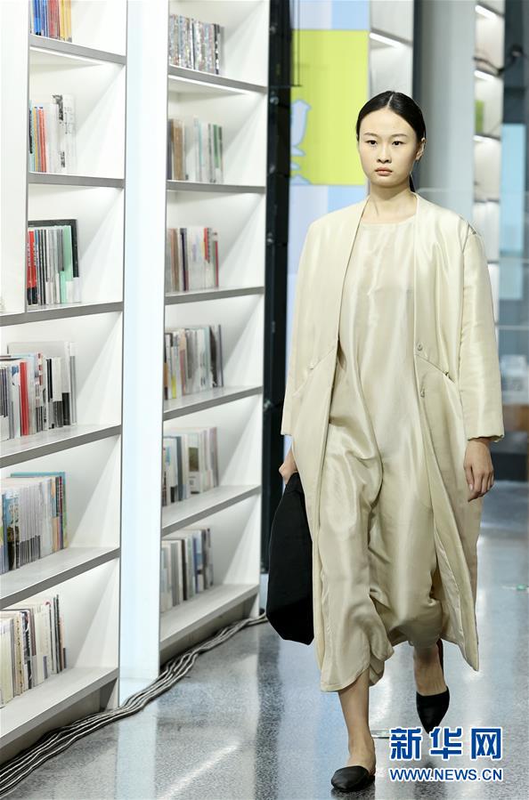 5月5日,模特在北京坊Pageone書店舉行的中國國際時裝周(2020/2021秋冬系列)“Beauté Comme Toi·姜月&CLEANFLOW·陳文熙”時裝秀上展示時裝。 新華社記者 陳建力 攝