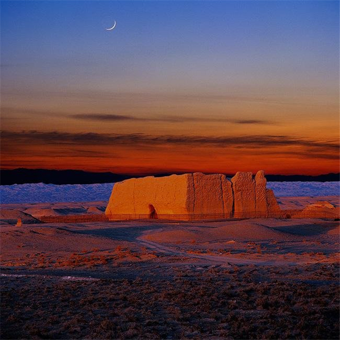 戈壁晚霞和暮鼓,疏勒河流古。聽(tīng)靜水流深,百轉(zhuǎn)千回,澤潤(rùn)荒原土。