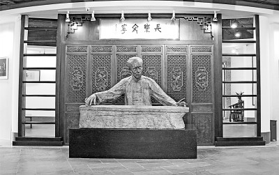 錢仲聯(lián)先生是學(xué)者,以研究古代詩詞著稱,尤其清詩研究,是中國最高權(quán)威。錢先生研究古代文學(xué),不僅能夠旁征博引,發(fā)人所未發(fā),更重要的是所有古代文學(xué)形式詩、詞、駢體文,錢先生都能如同古人一樣進(jìn)行創(chuàng)作。錢先生是1981年國家首批博導(dǎo),學(xué)界不僅重視他的學(xué)術(shù)成就,同時(shí)崇敬他的詩人身份。王元化稱錢先生為“一代詩豪”,深得學(xué)界贊同。那么,一位每天沉浸在古典世界的學(xué)者,應(yīng)該怎樣雕塑呢?紀(jì)峰創(chuàng)作的錢仲聯(lián)先生銅像是座半身像,我以為可以稱作“思想者錢仲聯(lián)”。錢先生緊閉雙唇,雙目微微下視,凝視不動。寧靜的表情,頭腦里卻在翻江倒海,風(fēng)云變幻。雖然面對的只是三尺書桌,但思想的深處,卻是上下五千年,縱橫八萬里。這是學(xué)者的獨(dú)特世界,平靜的海面平衡著深海的波濤洶涌。錢先生非常喜歡這座雕塑,臨睡前要用一方毛巾蓋上,說該休息了。早上,進(jìn)入書房的第一件事,就是拿掉毛巾,說該看書了。錢仲聯(lián)先生的最后歲月里,這件雕像成了他的工作同伴。