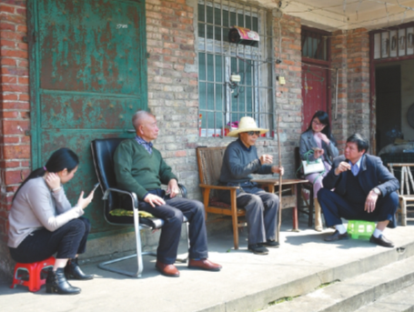 劉道云(右一)為寫(xiě)作《第一書(shū)記:精準(zhǔn)扶貧的“一線戰(zhàn)斗員”》,深入基層一線傾聽(tīng)群眾心聲。