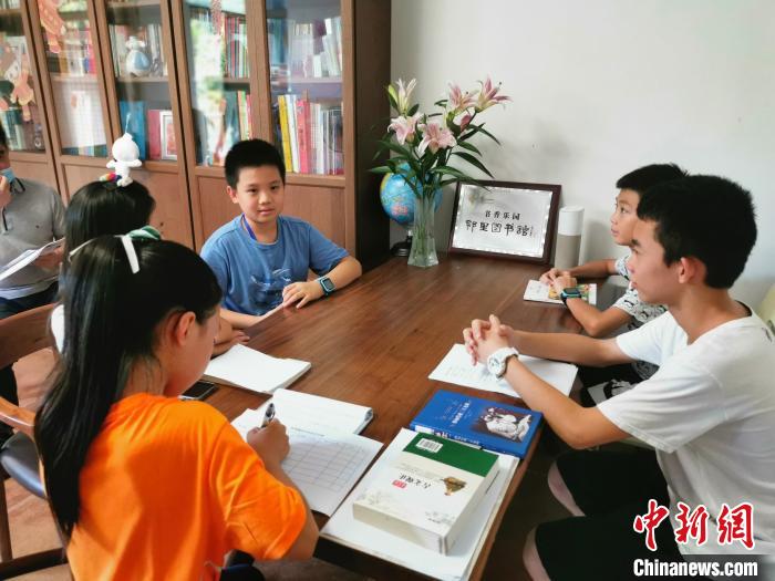 在書(shū)香樂(lè)園鄰里圖書(shū)館,小館長(zhǎng)莫岱妮正組織同學(xué)在家里進(jìn)行古詩(shī)詞競(jìng)猜游戲。 應(yīng)妮 攝