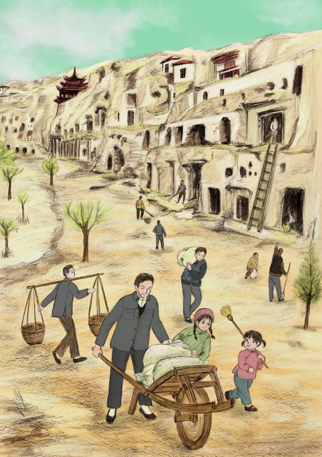 這也是一本有時代縱深感的書,它從欣潔失去媽媽的抗戰(zhàn)時期寫起,一直寫到中國人民解放軍接管敦煌。它寫欣潔一家坐著敞篷卡車,一路顛簸從成都來到敦煌,作品對沿途自然風(fēng)貌和人情民俗的多彩變化都有生動描寫。它寫欣潔一家在敦煌的小土屋里安家,既有時代地域特色又有家庭的溫馨和暖陽。它寫一個小女孩如何從對莫高窟的一無所知到逐漸認(rèn)知、理解再到熱愛的成長歷程,充分表現(xiàn)了敦煌人一開始就具有的積極上進的理想和精神。同時作者也力圖通過這樣一個故事告訴我們,一個孩子是怎樣認(rèn)識并理解敦煌的。