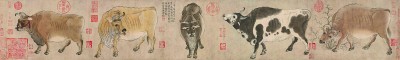 圖系唐代韓滉作《五牛圖》,故宮博物院藏。