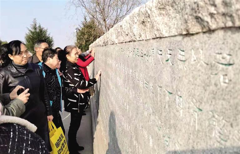 活動中,我市50多名視障讀者應(yīng)邀在50多名志愿者的攙扶和引導(dǎo)下走進了蘭州國學館,開始了這場雙手“觸摸”國學之旅。講解員分兩組帶領(lǐng)著大家參觀了蘭州國學館,在他們溫暖、親切的嗓音里,國學館的風情樣貌逐漸在視障讀者的心中變得愈發(fā)清晰。一路上,工作人員還不斷鼓勵他們用身體去觸摸影雕、浮雕、線刻等,用指尖近距離感受著國學精粹的無比魅力。參觀完畢后,視障讀者們舉行了國學經(jīng)典交流與分享活動,在暢所欲言中表達了內(nèi)心的激動和喜悅。