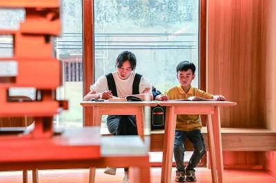 5月8日,一對(duì)母子在福建省晉江市東石鎮(zhèn)“母親的房子”圖書(shū)館內(nèi)閱讀。今年5月,福建省晉江市東石鎮(zhèn)“母親的房子”圖書(shū)館正式對(duì)外開(kāi)放。“母親的房子”是福建省晉江東石籍作家蔡崇達(dá)《皮囊》書(shū)里所描述的一座房子?,F(xiàn)在,這座房子被他改造成了一座現(xiàn)代風(fēng)格與閩南特色相融合的公益圖書(shū)館,成為當(dāng)?shù)毓参幕囊徊糠?。新華社發(fā)