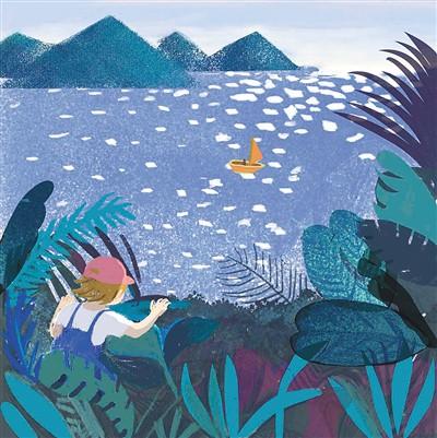 在遠(yuǎn)離故鄉(xiāng)的城市里,我的心無處可去。身處故鄉(xiāng)的時候,我們總眼望遠(yuǎn)方,“然而/那未知的風(fēng)景才是我向往的/哪怕它已落花滿地/哪怕它已人去樓空”。我喜歡這四句,因為它那種平靜而堅決的向往,寥寥幾句卻直透人心。這首詩的配圖是樹叢中的孩子遠(yuǎn)眺平靜湖面上一艘小船,粼粼的湖面像藍(lán)灰色的操場一樣平實,就像無聲的邀請。但當(dāng)我們走到遠(yuǎn)方,故鄉(xiāng)又會成為心頭揮之不去的念想。