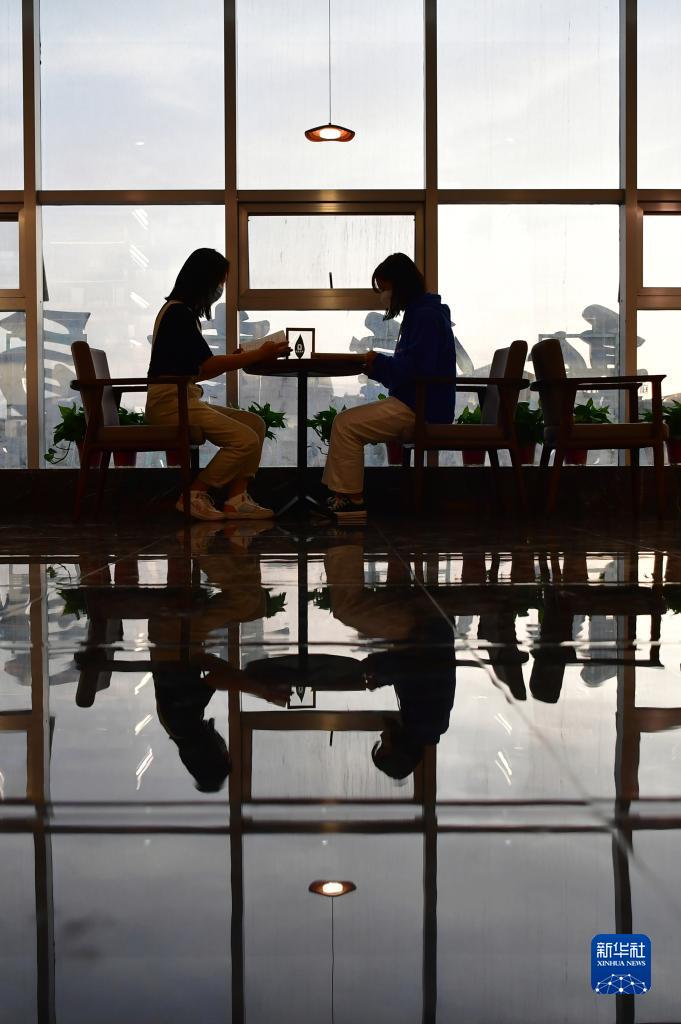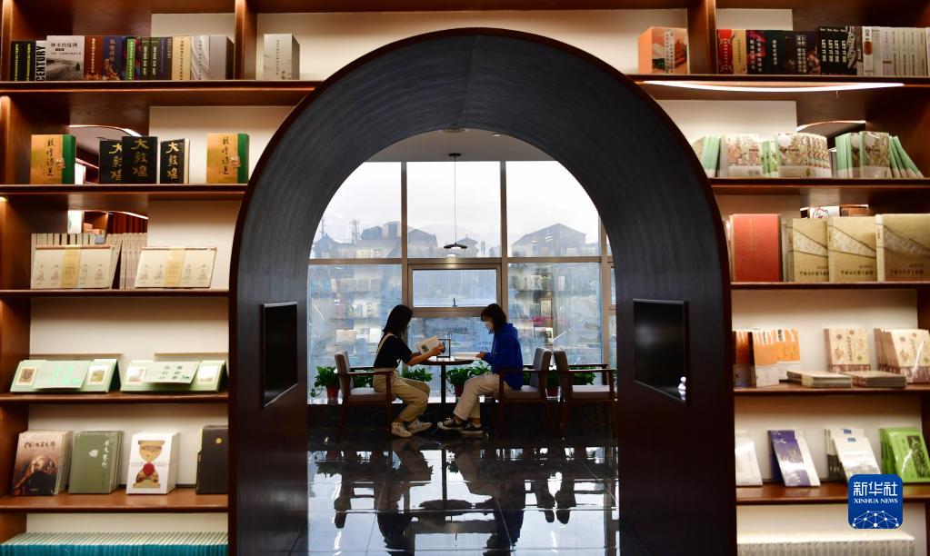 讀者在敦煌書局閱讀區(qū)看書(4月21日攝)。新華社記者 杜哲宇 攝