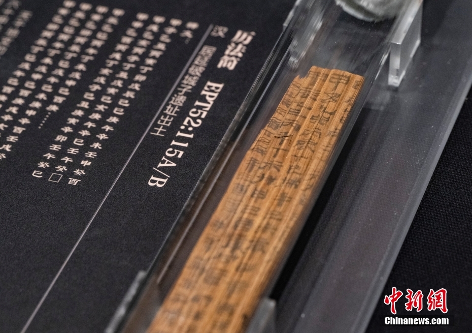 1月17日,“二十世紀(jì)初中國古文獻(xiàn)四大發(fā)現(xiàn)展”正在位于北京的國家典籍博物館內(nèi)展出。本次展覽分為“殷墟甲骨”“居延漢簡”“敦煌遺書”“明清檔案”四個專題,首次將分藏于各處的四大文獻(xiàn)薈萃一堂,集中多種類型的珍貴文物文獻(xiàn)共249種,382件,是目前為止“四大發(fā)現(xiàn)”文物最大規(guī)模的展覽。圖為“居延漢簡”展區(qū)中展示的一條“歷法簡”的真跡實(shí)物展品。 中新社記者 侯宇 攝
