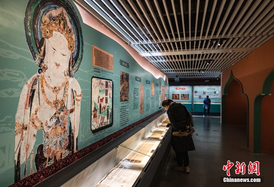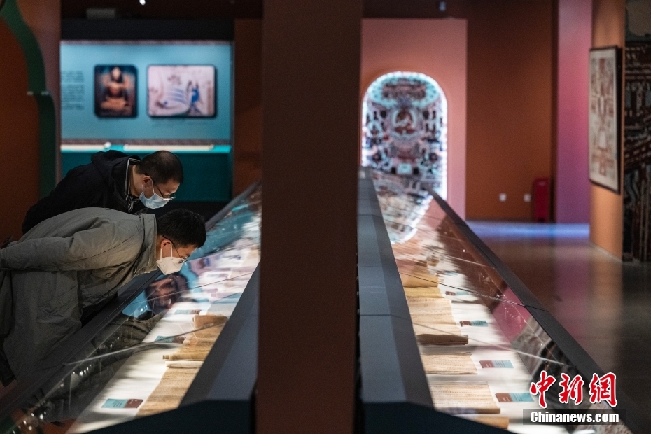 圖為觀眾在“敦煌遺書”展區(qū)內(nèi)參觀。 中新社記者 侯宇 攝